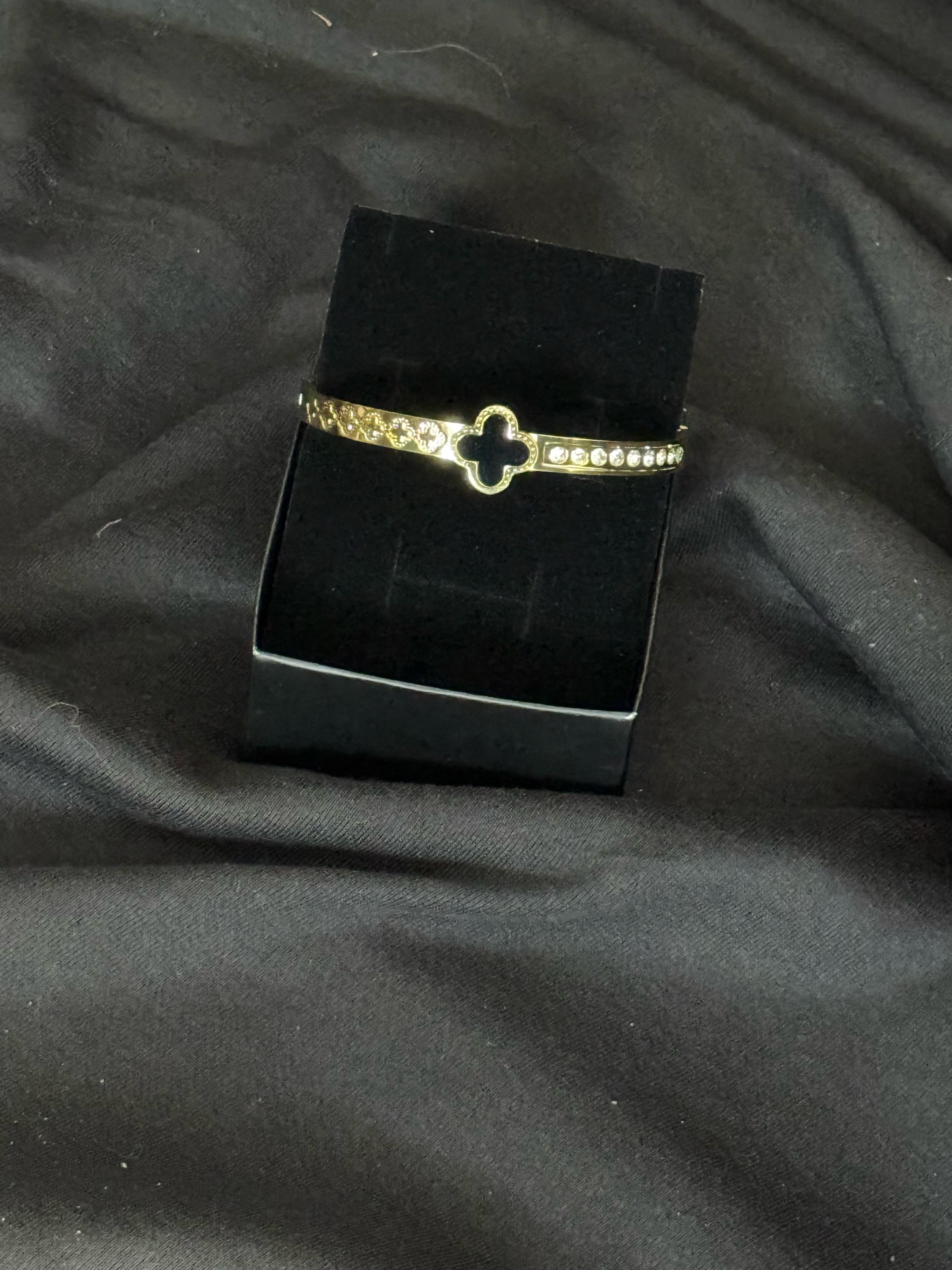 çelik gold yonca taşlı çelik bileklik