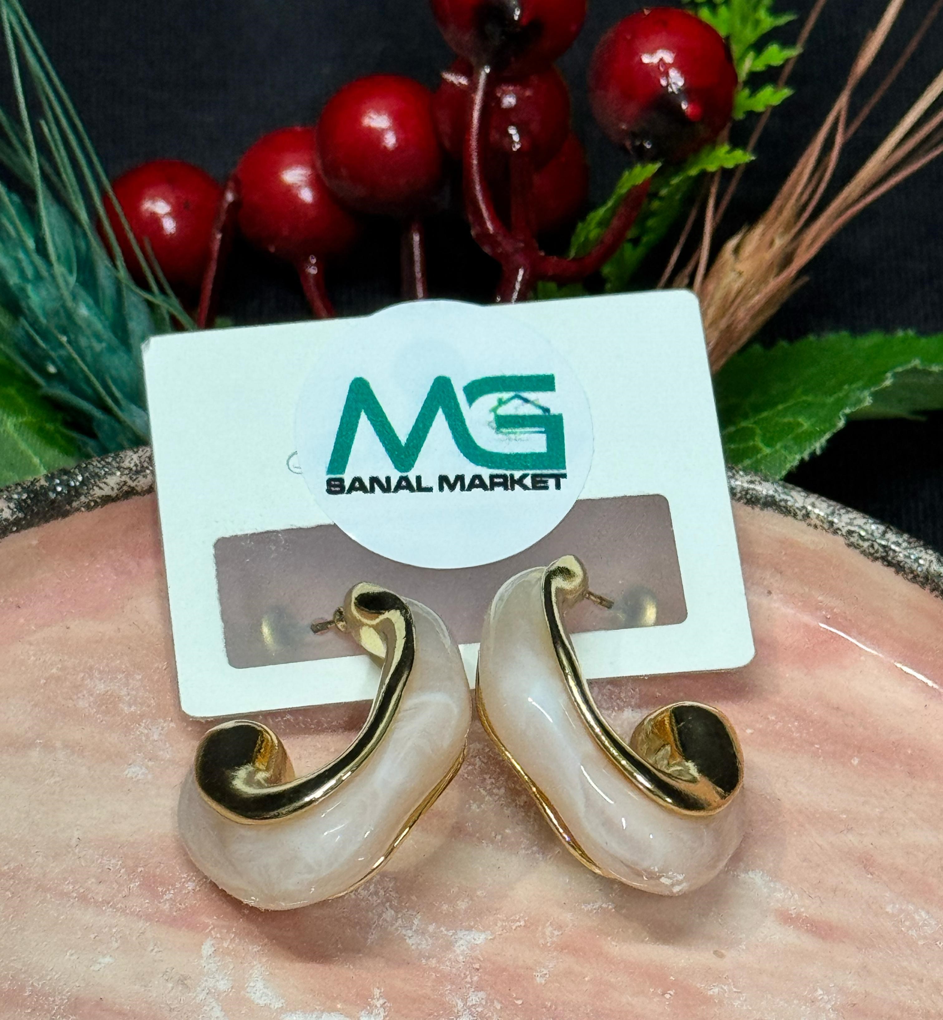 mermer görünümlü vintage tasarım küpe gold